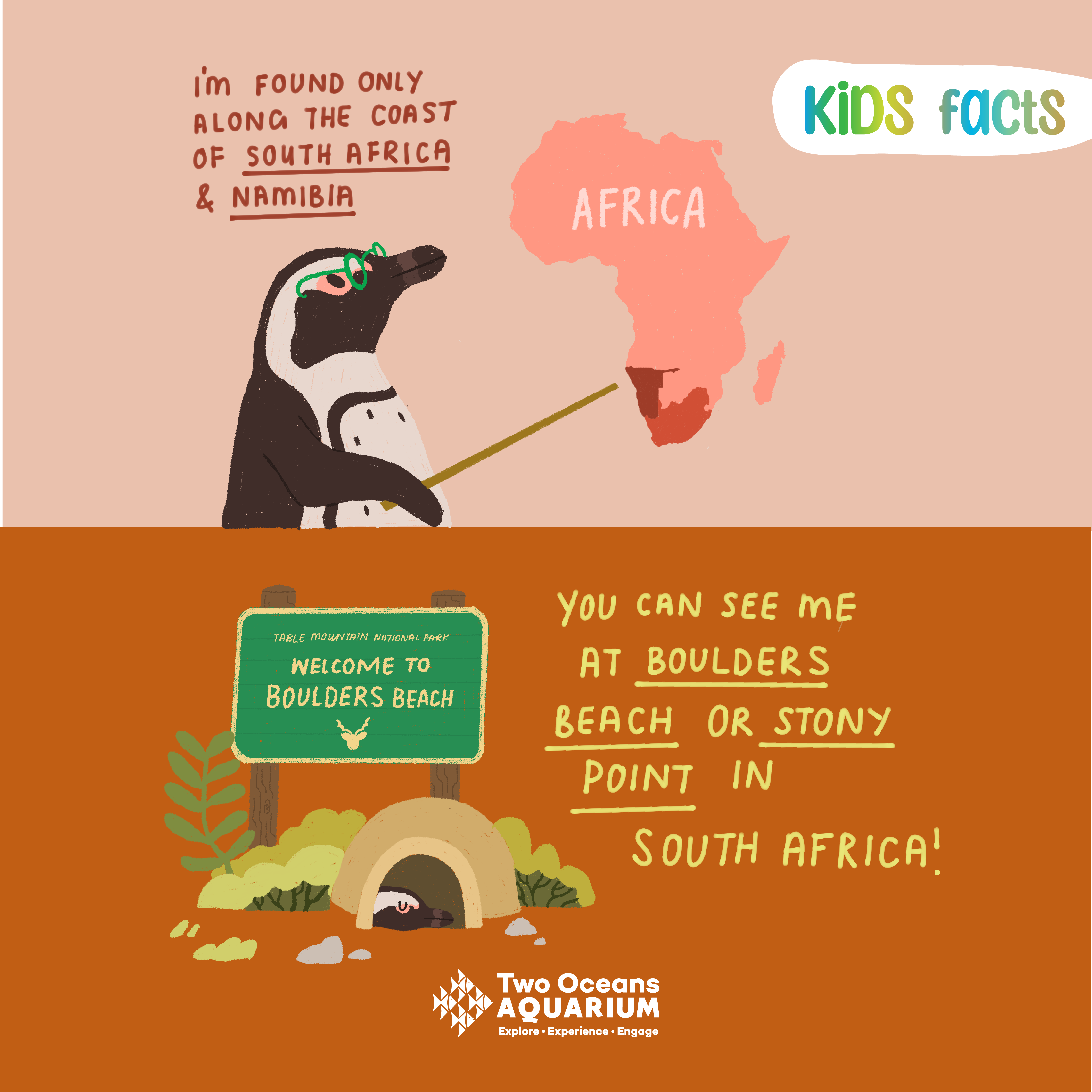 Penguins are flightless seabirds that live almost exclusively below the equator. Some penguins, like the African and Northern rockhopper, are found in warmer climates, although most – including emperor, adélie, chinstrap, and gentoo penguins – reside in and around Antarctica. The African penguin is the only species native to Africa and lives only in South Africa and Namibia. Boulders Beach in Simonstown is home to a colony of African penguins. Although there are 18 species of penguin which vary broadly in shape and size, all have black bodies and white bellies. No penguin species can fly, but their stiff flippers, webbed feet and sleek shape make them excellent swimmers. Unfortunately, roughly two-thirds of penguin species are listed as threatened on the IUCN Red List.